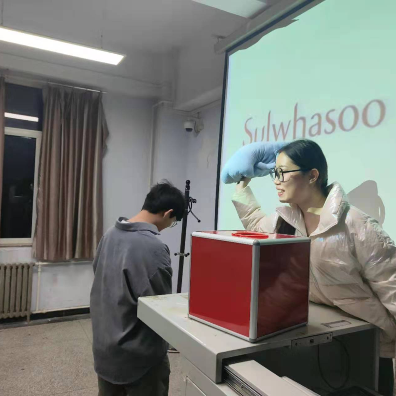 环节一:老师带领学生大家一起了解了韩国的国际品牌,韩国的大学校园,了解了当地的风土民情,并在之后环节进行了品牌猜猜猜游戏,猜对多者胜利,猜错者需要接受无敌绵绵拳的惩罚。
