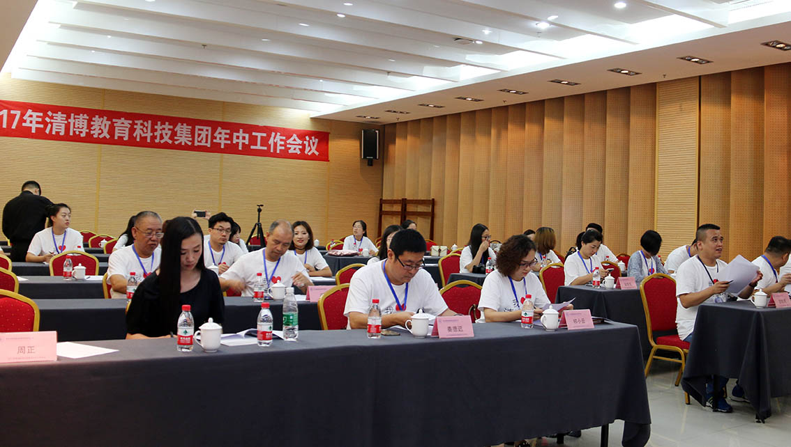 8月21日~22日,清博科技集团公司年中工作会议暨清博通昱教育科技有限公司成立大会在石家庄招考大厦隆重召开。各业务单元/部门进行上半年工作总结,并结合公司现状及当前市场形势,进行下半年工作部署,规划了下半年重点任务。本次会议由总裁办主任林青主持,集团全体员工参加了本次会议。